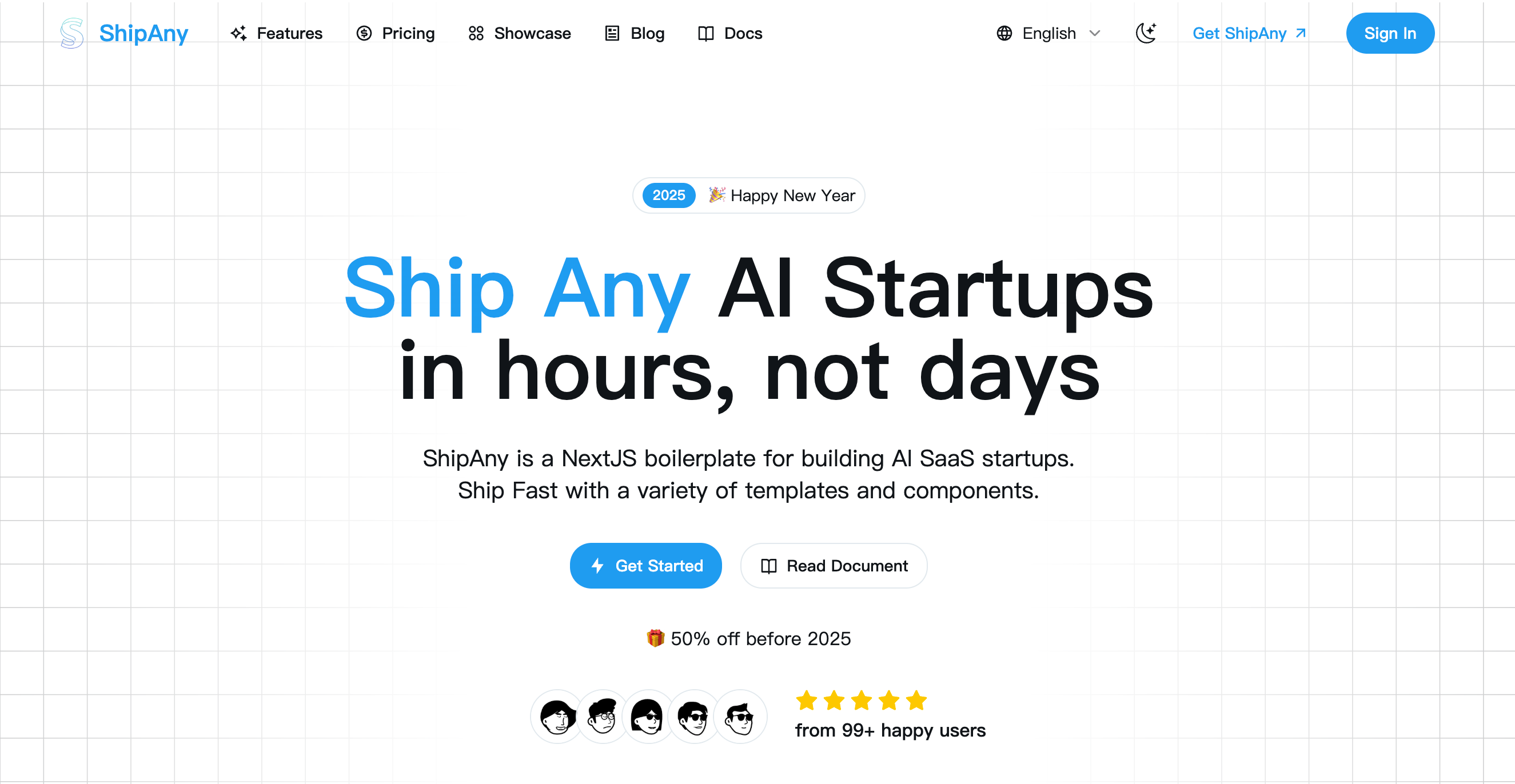 ShipAny is a NextJS-based AI SaaS development framework with built-in rich components and AI SDKs, helping you quickly complete AI SaaS project development.